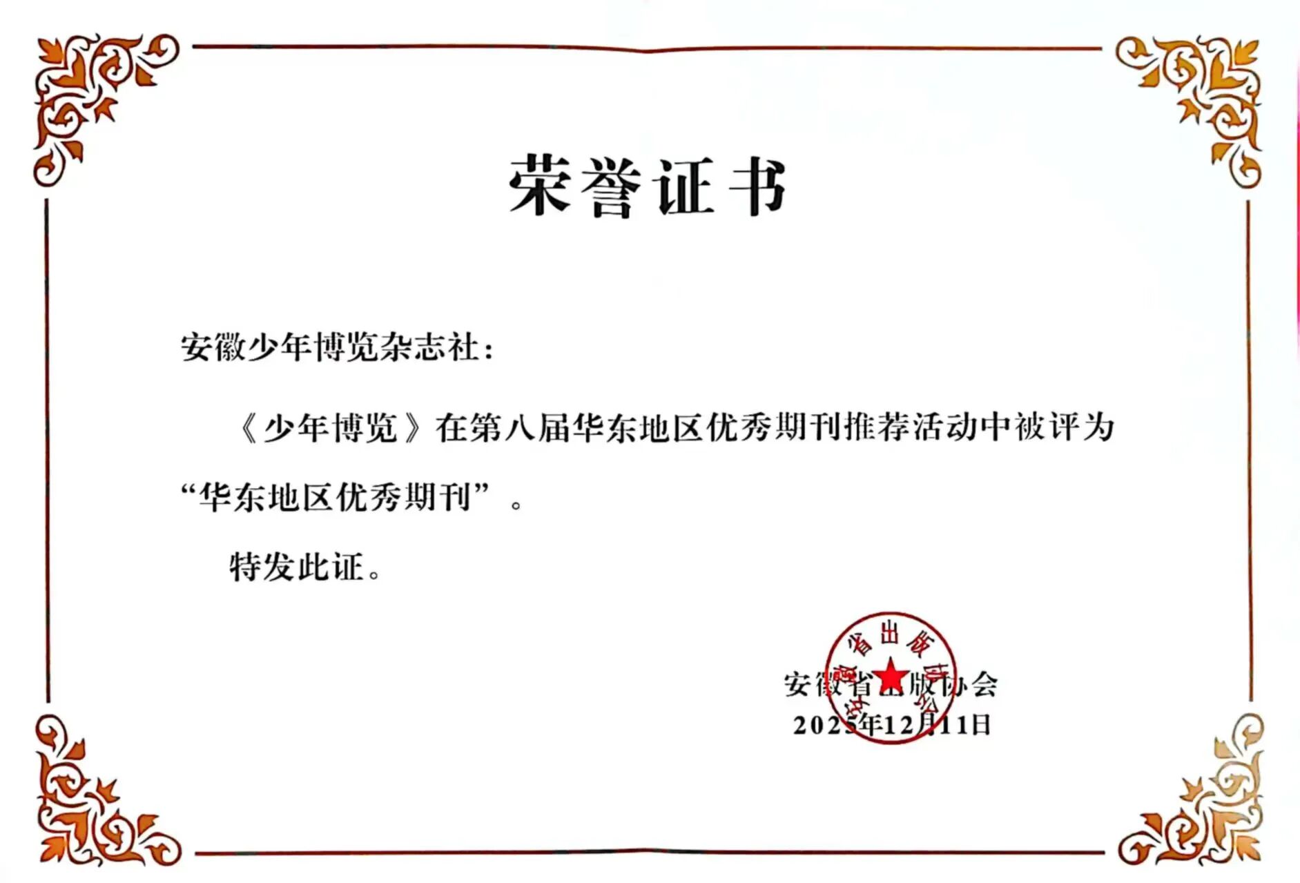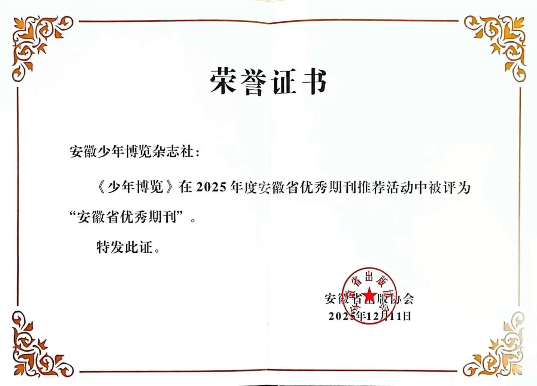 同时,2025年度安徽省优秀期刊名单公布,《少年博览》再度入选榜单。