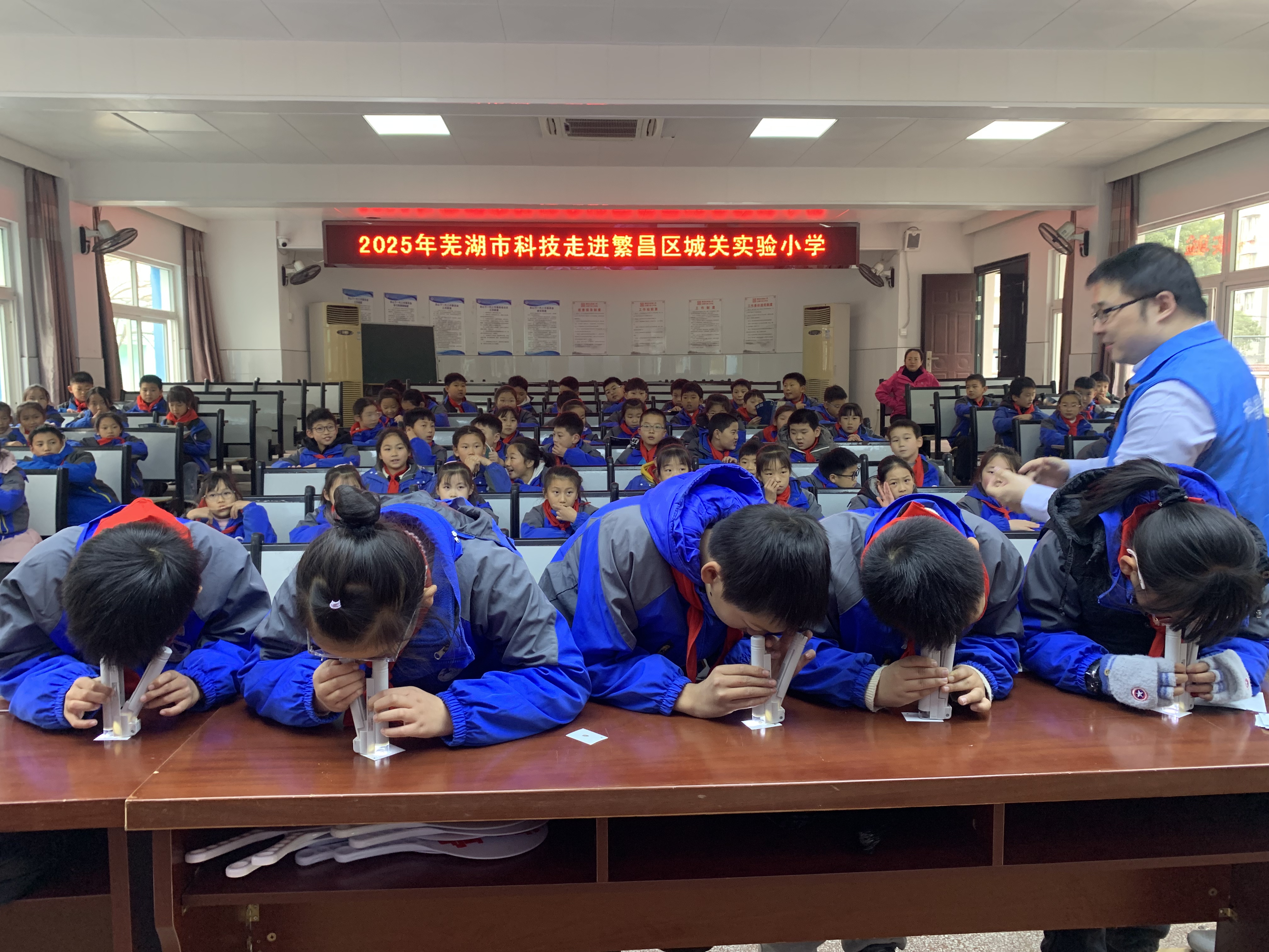 12月4日下午,由团芜湖市委、安徽少年博览杂志社、芜湖科技馆联合主办的“科技走进校园 梦想照进现实”系列活动走进繁昌区城关实验小学。活动以“鸣虫戏·探秘自然之声”为主题,通过生动有趣的科普课堂,引导少先队员亲近科学、热爱自然,在感知与探索中树立科技报国志向。