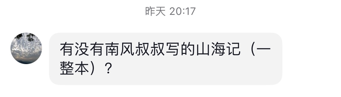 “有没有南风叔叔写的《山海记》(一整本)?”