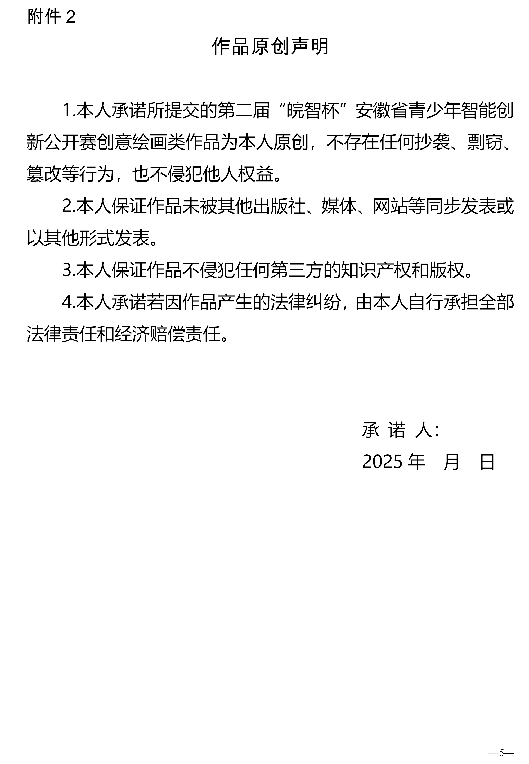 4.作品必须是原创,如发现有抄袭他人发明成果或由别人代替的,将取消参加活动的资格,并通知其所在学校。