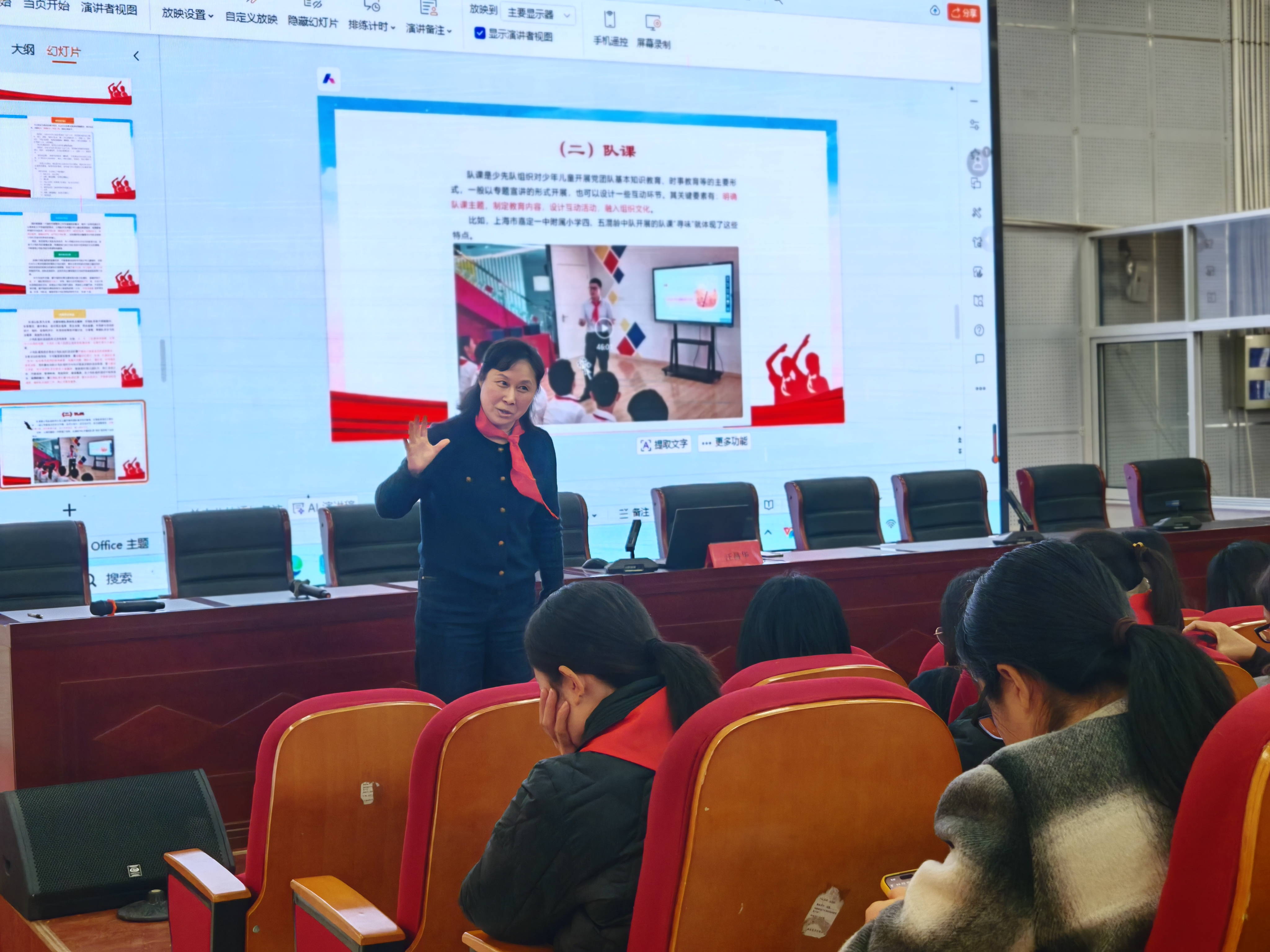 培训课程内容翔实,紧扣理论与实践。刘正华老师带来《千年古镇韵 红领巾传薪声》示范课,生动展示了如何挖掘本地优秀传统文化资源,并将其融入少先队活动,引导少年儿童增强文化自信,传承红色基因。接下来,孔颍老师分享了中国少年先锋队开城中心小学第二次代表大会的相关实践经验,为各校规范召开少代会提供了宝贵范例。