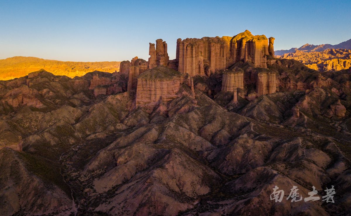 南边的这座山峰已经完全被太阳染红,这个层层叠叠的“赤壁千仞”,有人说像小布达拉宫。