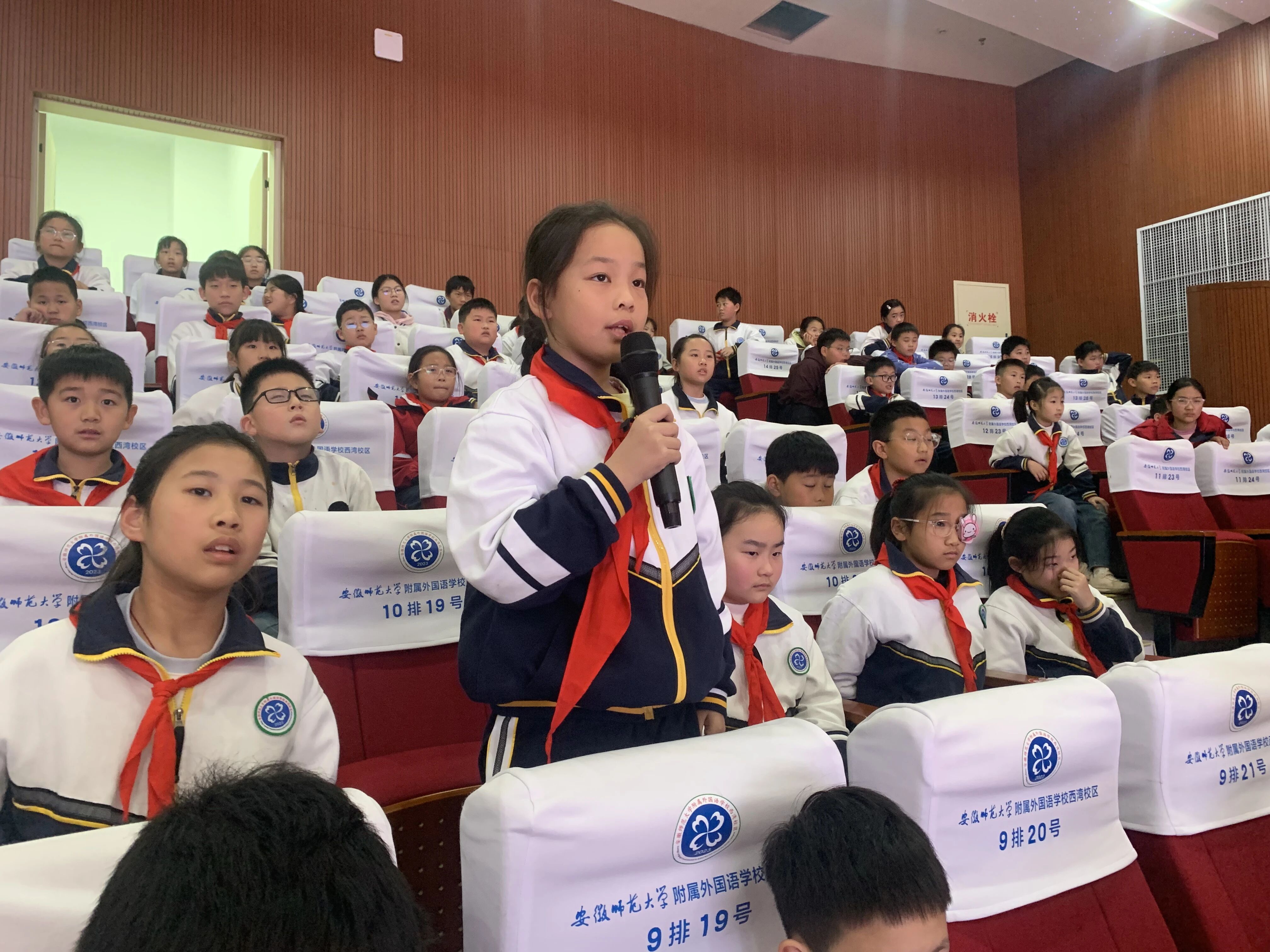 活动中,安徽少年博览杂志社编辑部主任夏冰以“写好有红色力量的作文”为题,为现场近五百名少先队员带来一场红色主题宣讲,并结合创作示例,引导队员在阅读、写作中多思考、多联想,从小切口、身边事入手,在文字中书写“为中国式现代化挺膺担当”的青春篇章。