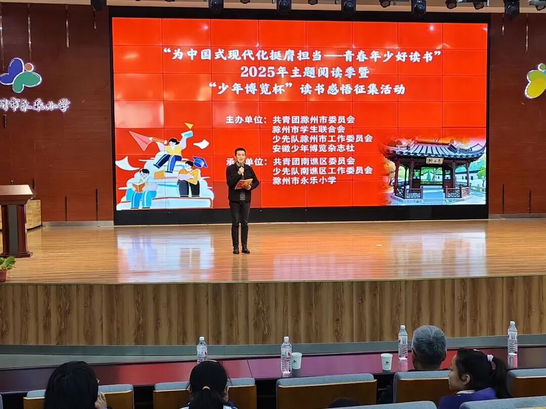 近日,“为中国式现代化挺膺担当——青春年少好读书”滁州市2025年主题读书季阅读分享活动在滁州市永乐小学成功举办。活动由团滁州市委、滁州市学联、滁州市少工委、安徽少年博览杂志社联合主办。