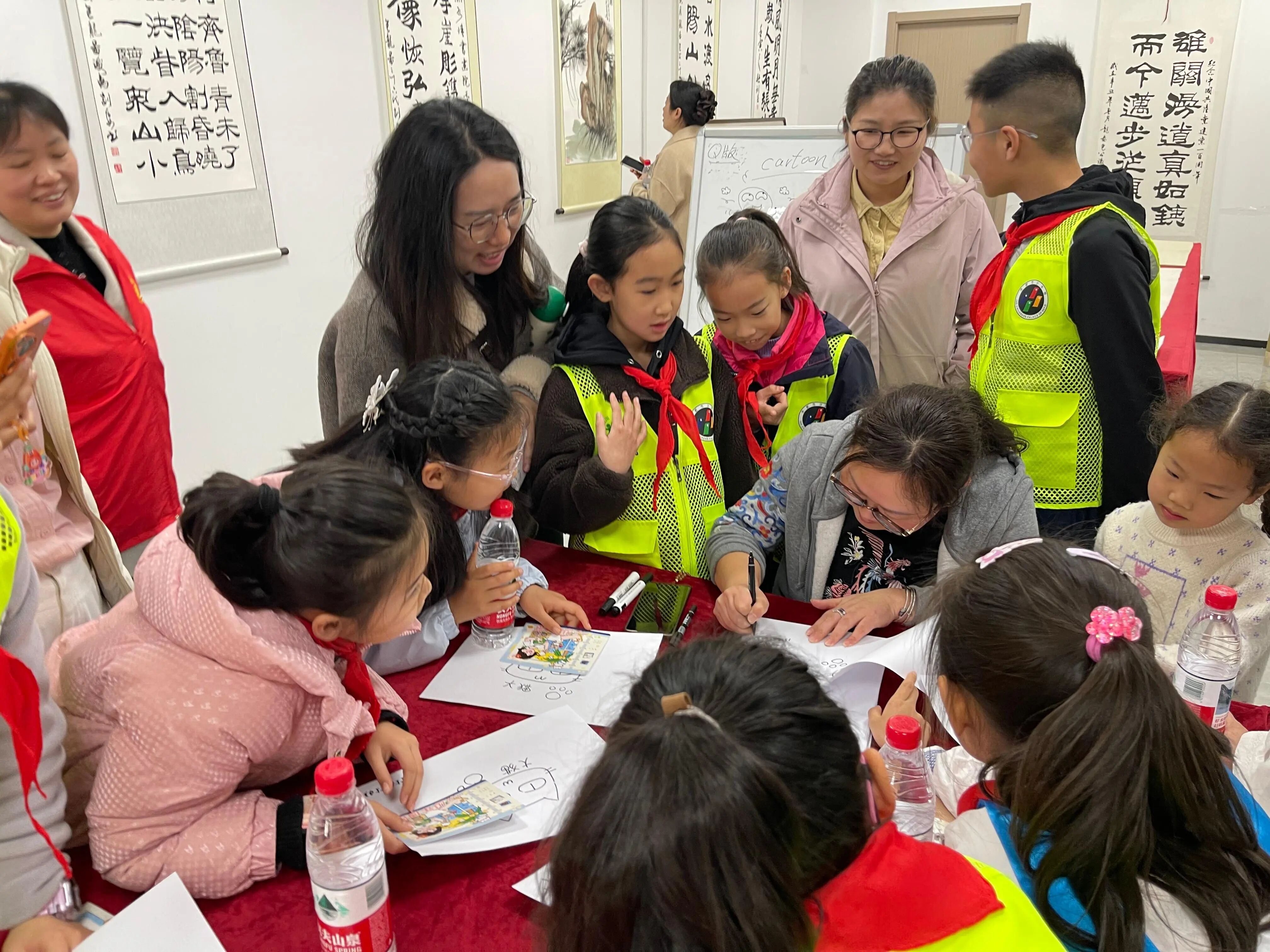 演出结束后,志愿服务环节正式开始。杂志社团支部的志愿者们充分发挥自身专业优势,分设写作辅导与美术指导两个环节,为在场的少先队员提供“一对一”细致辅导。