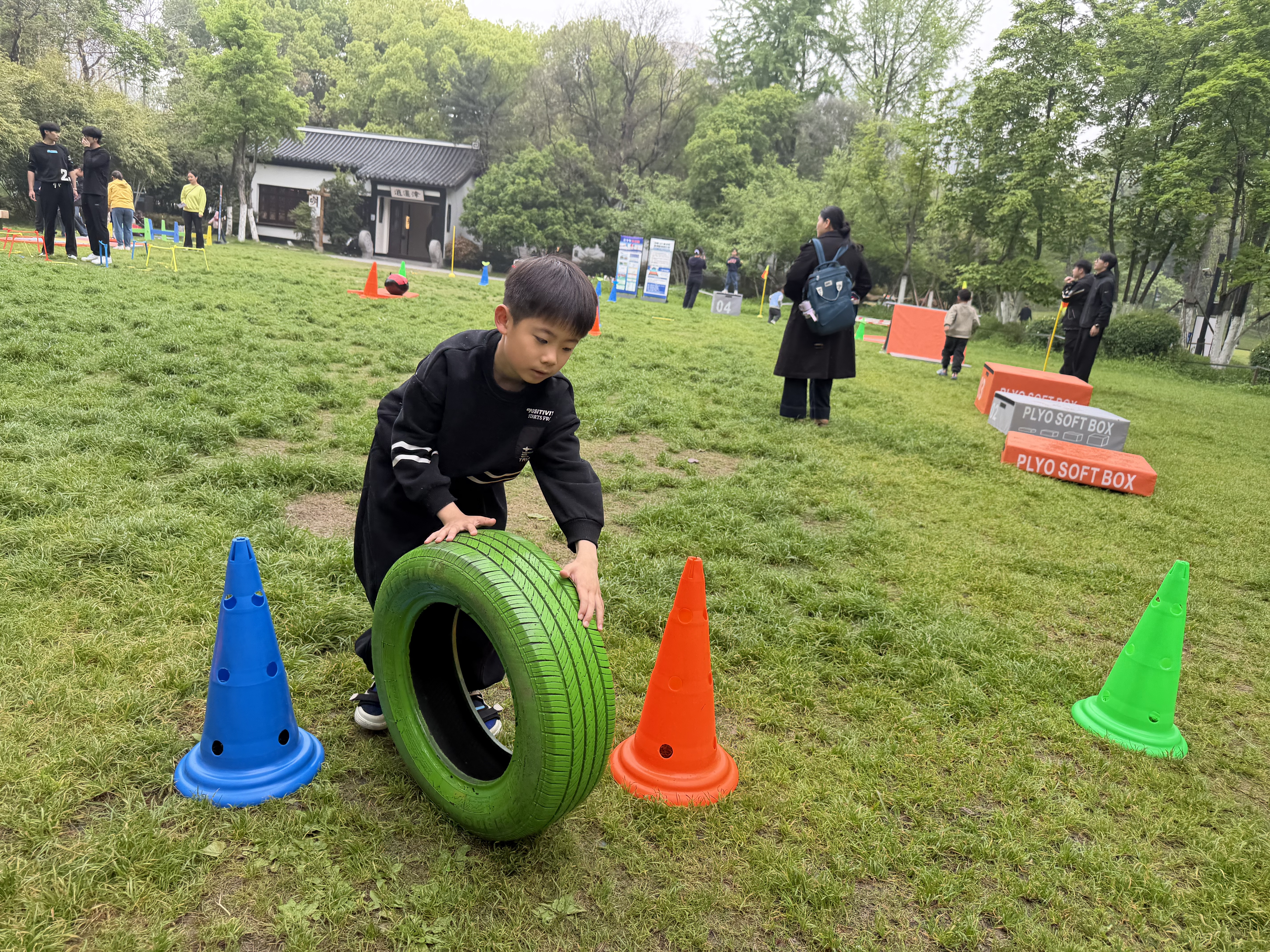 现场设置连续跨栏、平衡木行走、匍匐前进、跳绳接力等10个趣味运动项目,孩子们在挑战中挥洒汗水、锤炼体魄。